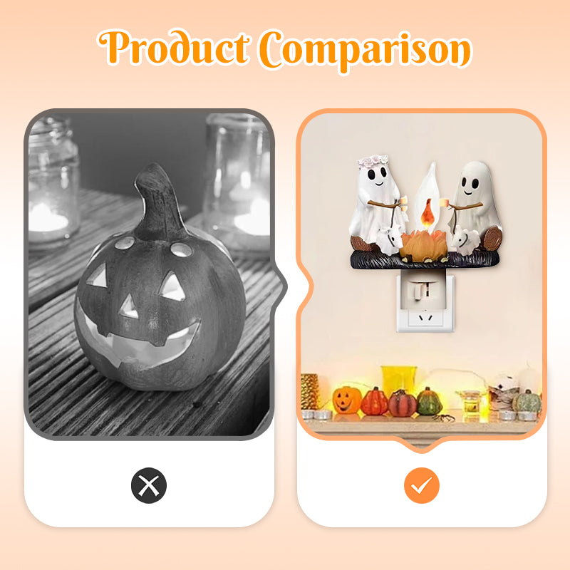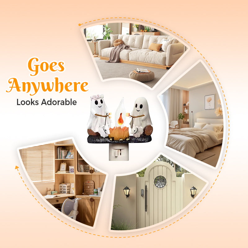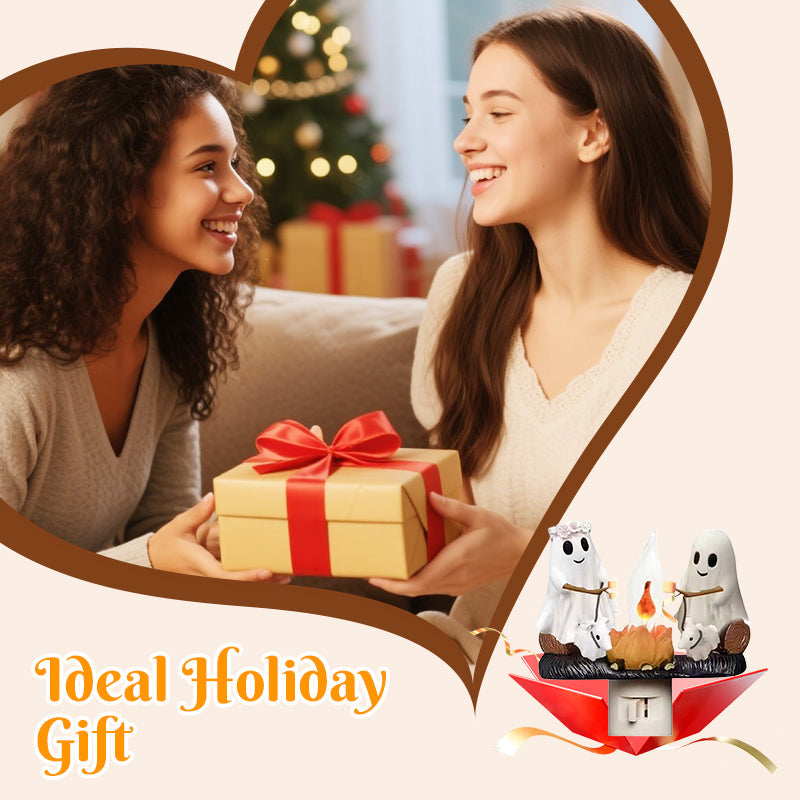 OKOUZLUJÍCÍ SVÁTEČNÍ SCÉNA U OHNĚ – Tato dekorativní noční lampička zobrazuje klasickou postavu ducha, který se shromáždil kolem zářícího ohně a opéká marshmallows, čímž vytváří okouzlující sváteční atmosféru. Okamžitě pozvedne sezónní výzdobu a vyzývá všechny, aby se nechali unést sváteční náladou. Tato jedinečná scéna přináší radost a dodává rodinným setkáním a tématickým večírkům nádech tajemna, čímž zanechává na hostech trvalý dojem.